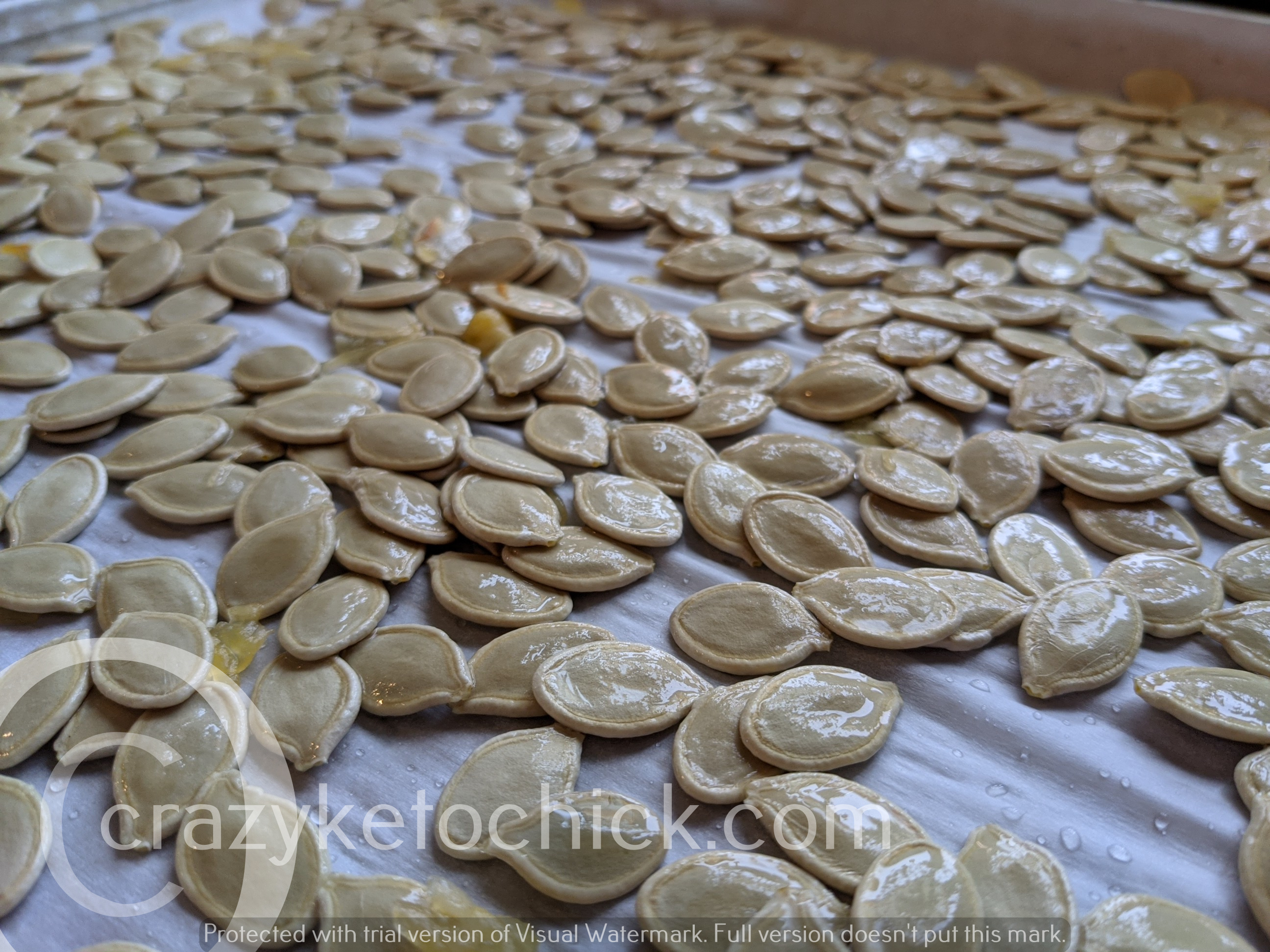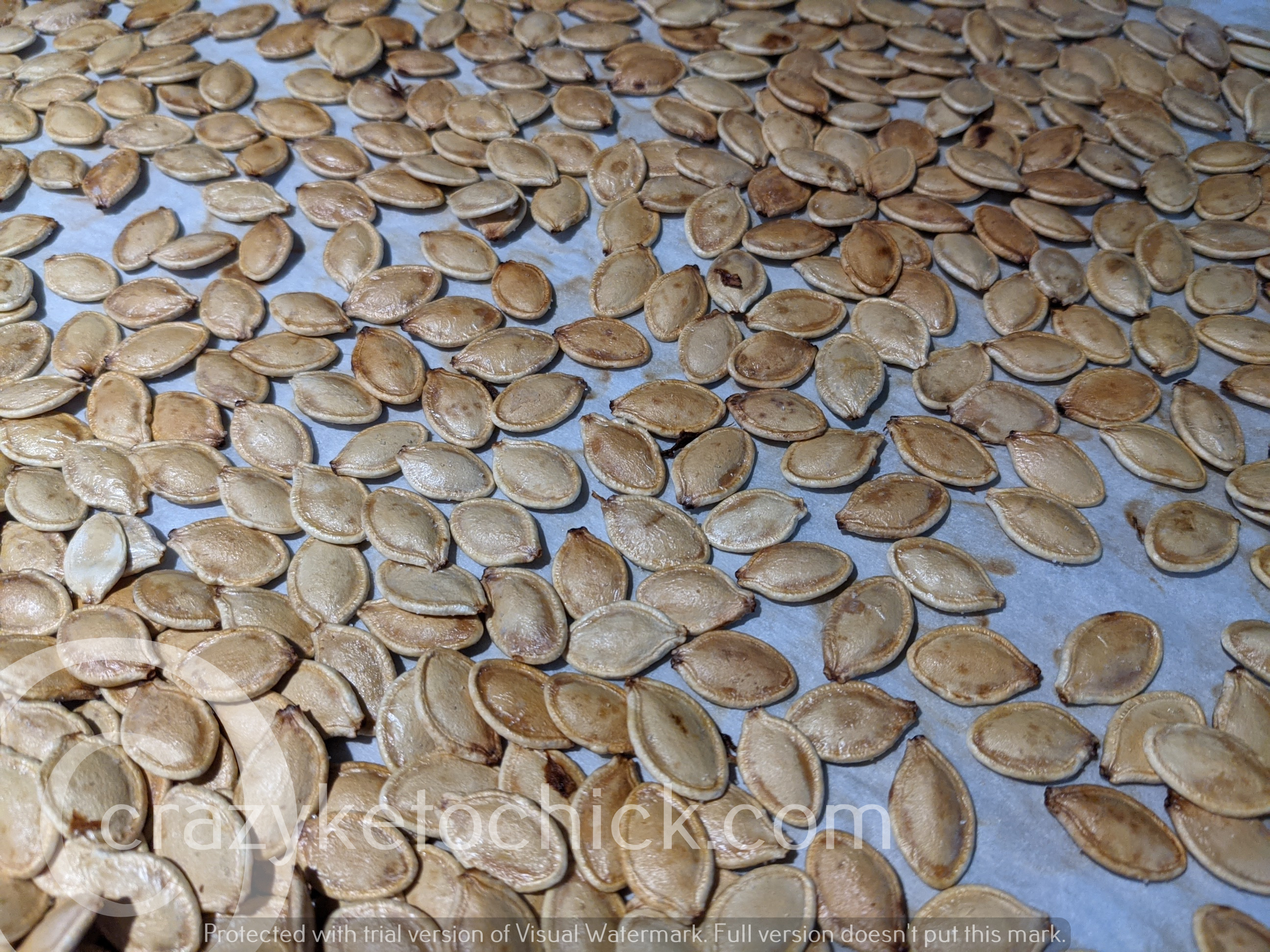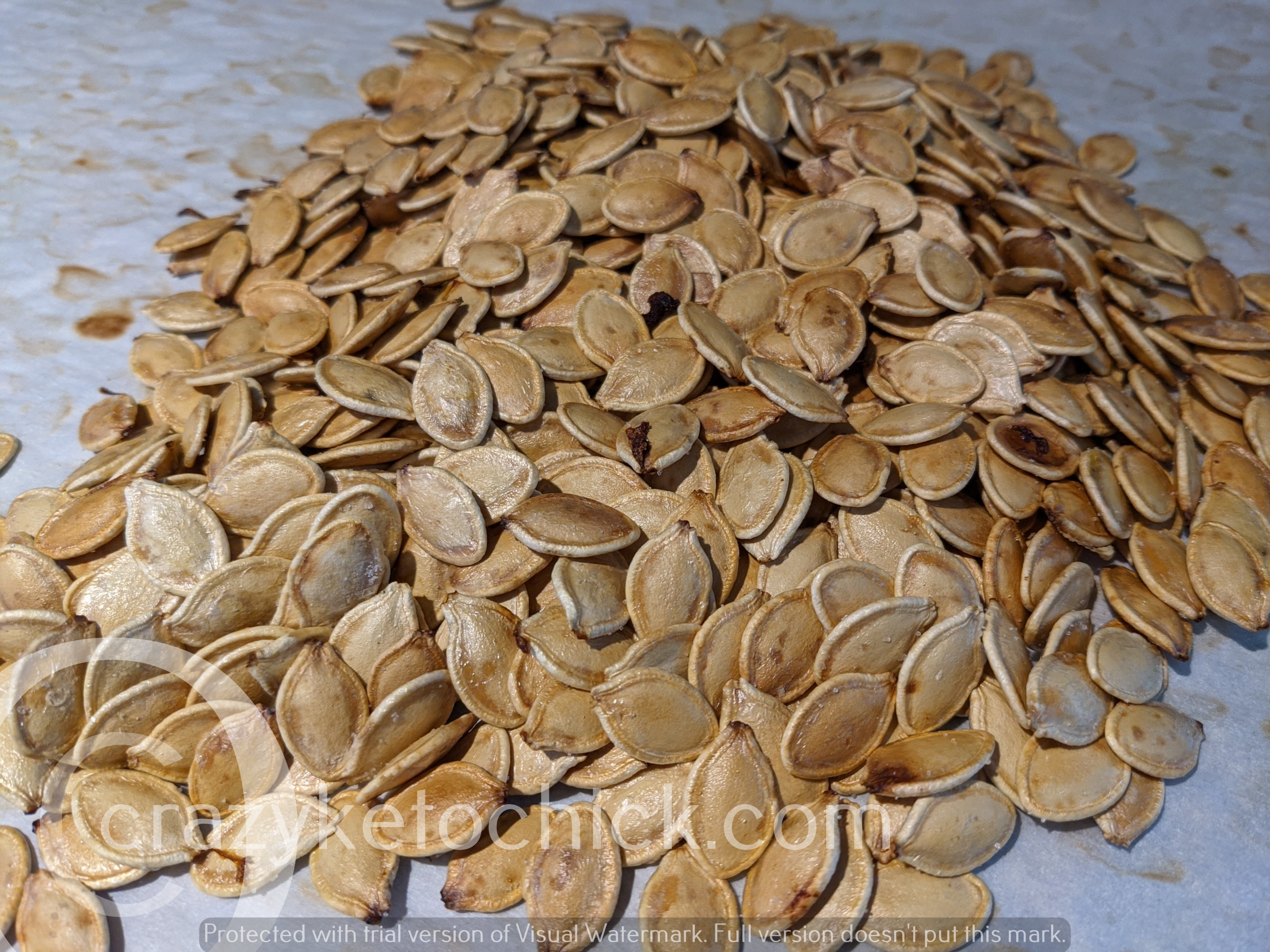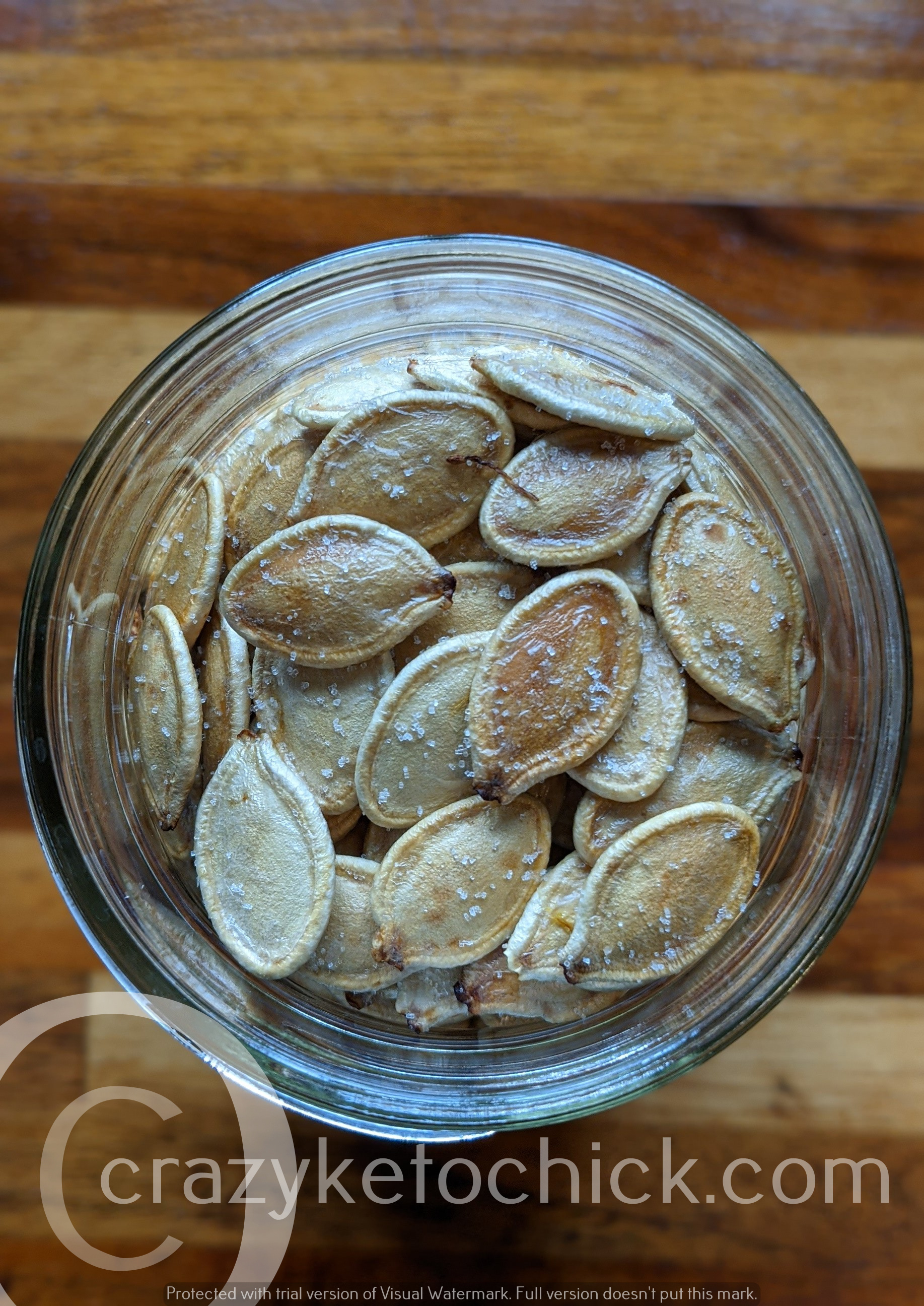 Pumpkin seeds are absolutely Keto, if they fit into your macros. Like with most things in life, if you eat a moderate amount of seeds, that can easily give you a good crunchy snack. 1oz, or 85 seeds still have 10 net carbs, so take that into consideration! When carving pumpkins, I save the innards and use for multiple purposes.