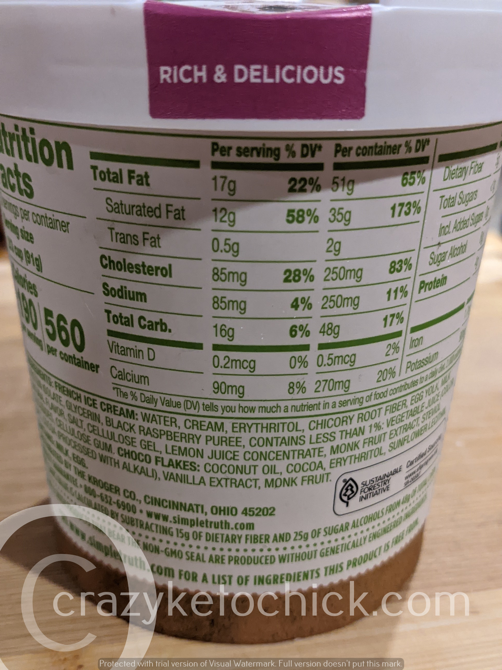 Today I am reviewing Simple Truth Keto French Ice Cream Black Raspberry Chip. The Simple Truth brand, launched by Kroger, is certified organic by the USDA.